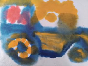 In der Regel haben Vorschulkinder noch keine Hemmungen mit dem freien Umgang der Farbe. Sollte es in Einzelfällen so sein (Medienkonsum) kann ich mit frei erzählten Farbgeschichten anregen und den kreativen Prozess in Gang setzen, und das Kind wird fähig, innere Bilder umzusetzen und sich malerisch mit den Farben auszudrücken. Die Art der Technik des Aquarellierens auf feuchtem Papier, die sogenannte Nass- in Nasstechnik, ist für die Kinder besonders geeignet das Farberleben zu empfinden, weil das Wasser die Farbe führt und es immer wieder zu Begegnungen kommt. Sie stellen mit Erstaunen fest, wie Farbtöne entstehen, warme Töne hervortreten oder kalte Nuancen in der Ferne liegen. Diese Art des Aquarellierens bildet das kindliche Gemüt und die innere Regsamkeit.
